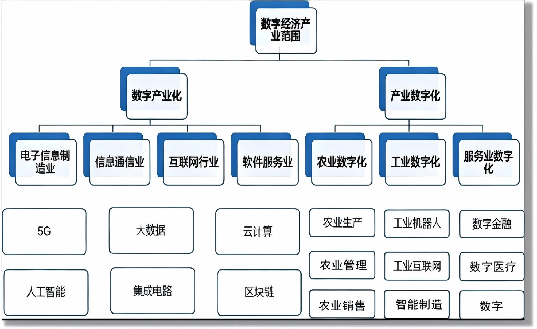 数字经济(Digital Economy)是以数据资源为关键要素、现代信息网络为主要载体、信息通信技术融合应用为驱动力的新型经济形态,涵盖大数据、云计算、物联网、区块链、人工智能和5G通信等技术领域。