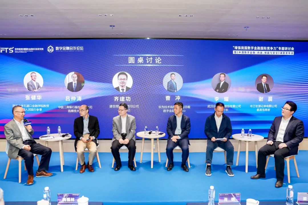 中国工商银行首席技术官、我院学术委员会委员吕仲涛,建信理财有限责任公司党委书记齐建功,华为技术有限公司副总裁、数字金融军团CEO曹冲,武汉众邦银行副行长李耀,申万宏源证券有限公司首席信息官谢晨等领导和专家先后在圆桌讨论环节发言。清华大学五道口金融学院教授、中国人民银行参事、我院学术委员会委员张健华主持圆桌讨论。