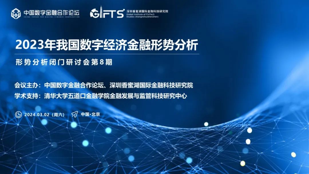 在此背景下,中国数字金融合作论坛与深圳香蜜湖国际金融科技研究院于近日联合举办形势分析闭门研讨会,并发布原创研究成果《2023年我国数字经济金融形势分析报告》,报告分析了2023年我国数字经济运行的基本情况、数字金融运行的趋势和特点、当前数字经济金融发展面临的问题和挑战,并提出了相关政策建议。来自政府部门、金融机构、实体企业、科技公司、高校智库近百位嘉宾受邀参会。