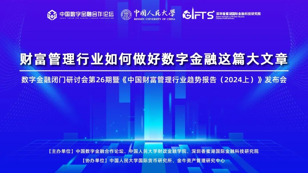 在此背景下,中国数字金融合作论坛联合中国人民大学财政金融学院与深圳香蜜湖国际金融科技研究院,于近日联合举办“财富管理行业如何做好数字金融这篇大文章”闭门研讨会暨《中国财富管理行业趋势报告(2024上)》发布会。与会专家围绕今年来我国财富管理行业发展呈现的新趋势、新特点展开全面探讨,分享数字财富管理行业优秀实践与案例,深入分析财富管理行业做好数字金融这篇大文章面临的困难与挑战,并就下一步财富管理行业数字化转型和高质量发展提出相关对策建议。