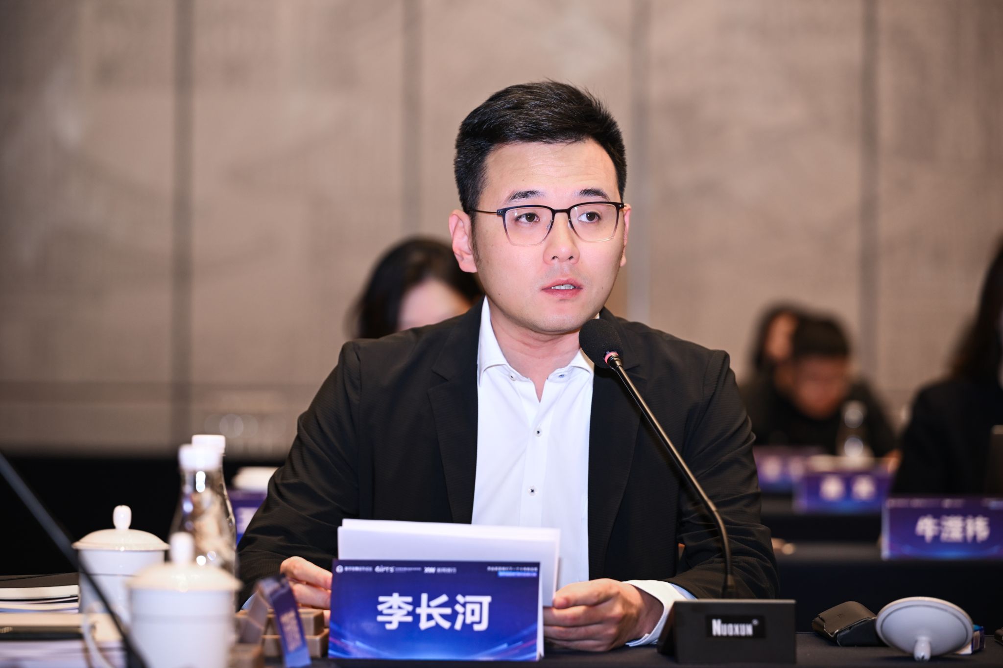温州民商银行副行长富志刚,北京中关村银行行长助理、董事会秘书高峰,江西裕民银行党委书记黄书川,吉林亿联银行行长蒋永军,浙江网商银行董事长金晓龙,安徽新安银行副行长李智,武汉众邦银行副行长罗磊,辽宁振兴银行党委副书记(代党委书记)孙嘉巍,湖南三湘银行行长万洁,苏商银行行长王景斌,无锡锡商银行风险总监余享华,重庆富民银行副行长钟子明等其他民营银行高管代表在同业交流环节发言。